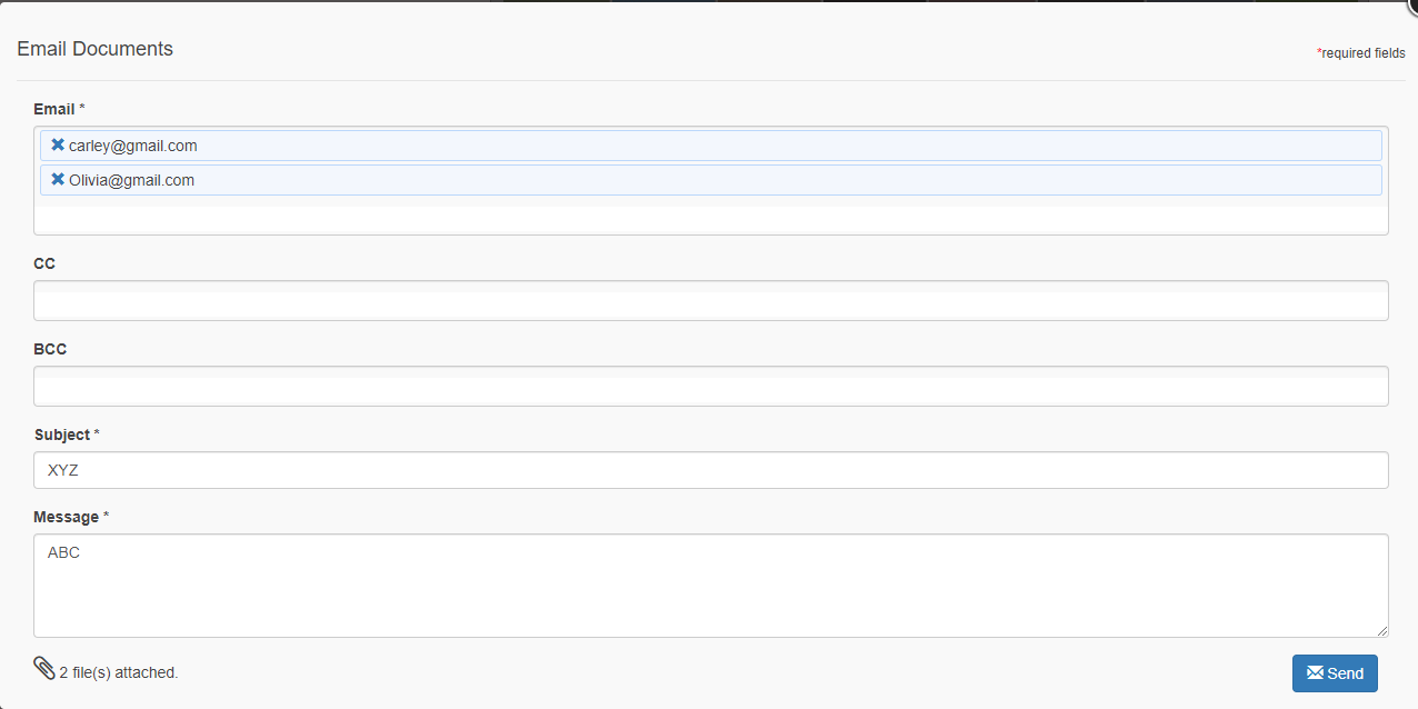 Simply select the document(s) you would like to send and click the email button on the FileAssure menu bar.