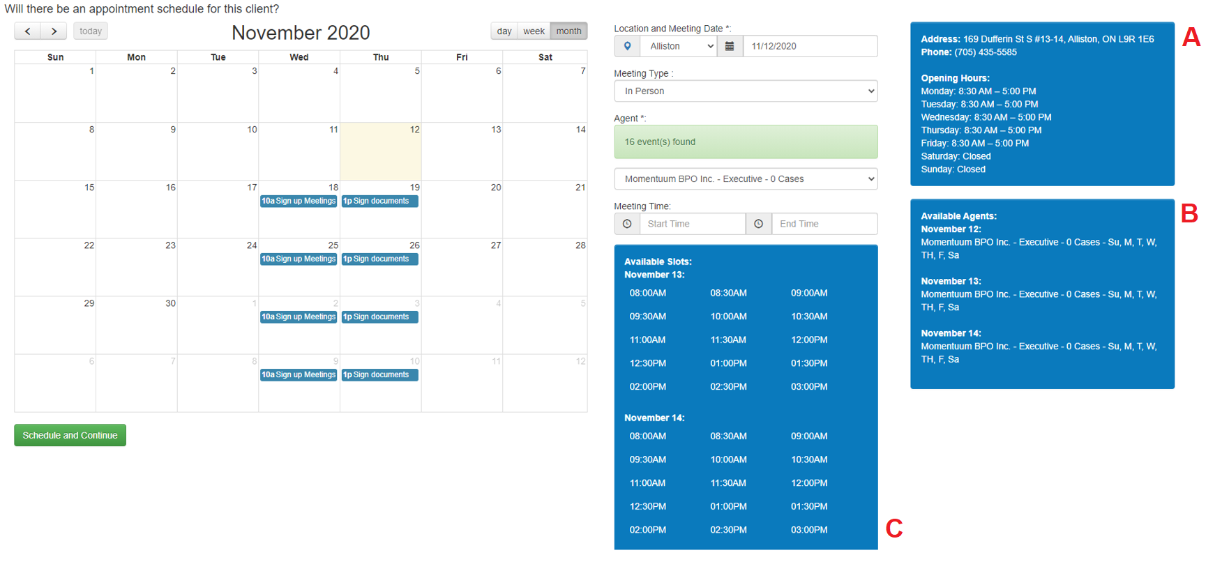 The system will automatically present all the open time slots available, for agents at an office location, over the next two days (including the current day).